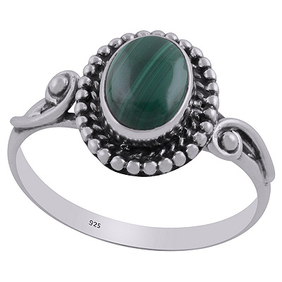 Alluring Oxidised Work Around Malachite Oval Shape 925 Sterling Solid Silver Ring