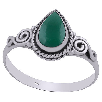 Stunning Wire Coil Work Around Green Onyx Pear Shape 925 Sterling Solid Silver Ring