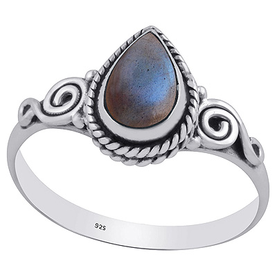 Stunning Wire Coil Work Around Labradorite Pear Shape 925 Sterling Solid Silver Ring