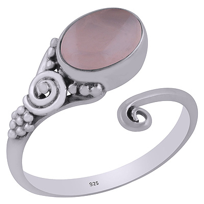 Stunning Prong Setting Around Rose Quartz Oval Shape 925 Sterling Solid Silver Ring