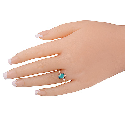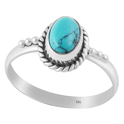 Alluring Rawa & Textured Wire Work Around Turquoise Oval Shape 925 Sterling Solid Silver Ring