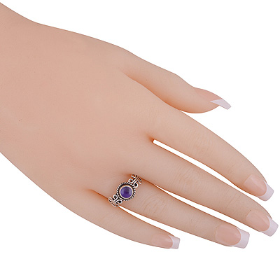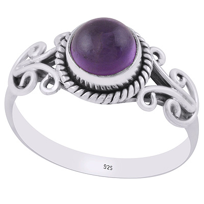 Alluring Wire Work Around Amethyst Round Shape 925 Sterling Solid Silver Ring