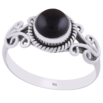 Alluring Wire Work Around Black Onyx Round Shape 925 Sterling Solid Silver Ring