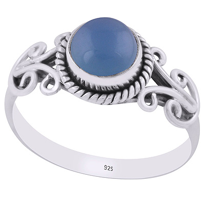 Alluring Wire Work Around Blue Chalcedony Round Shape 925 Sterling Solid Silver Ring