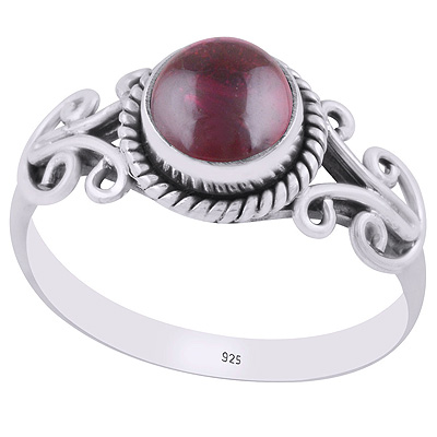 Alluring Wire Work Around Garnet Round Shape 925 Sterling Solid Silver Ring