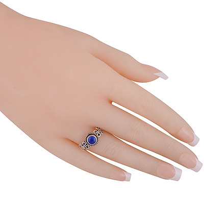 Alluring Wire Work Around Lapis Round Shape 925 Sterling Solid Silver Ring