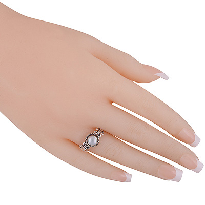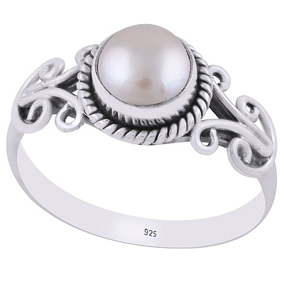 Alluring Wire Work Around Pearl Round Shape 925 Sterling Solid Silver Ring