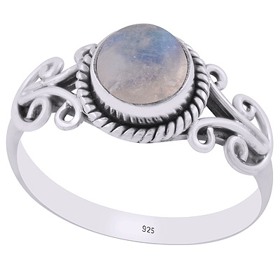 Home | Silver Rings | Cabochon Rings | Alluring Wire Work Around Rainbow Moonstone Round Shape 925 Sterling Solid Silver Ring
