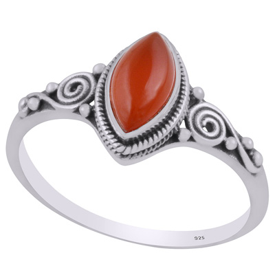 Beautiful Coil Work Around Carnelian Marquise Shape 925 Sterling Solid Silver Ring