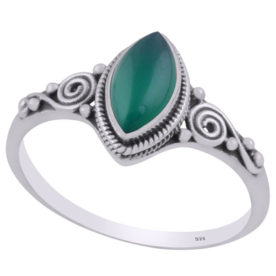 Beautiful Coil Work Around Green Onyx Marquise Shape 925 Sterling Solid Silver Ring