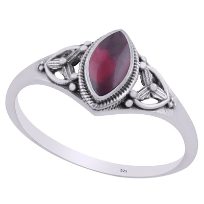 Gorgeous Handcrafted Work Around Garnet Marquise Shape 925 Sterling Solid Silver Ring