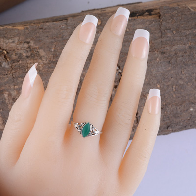 Gorgeous Handcrafted Work Around Malachite Marquise Shape 925 Sterling Solid Silver Ring