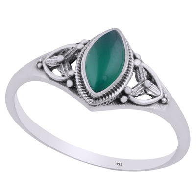 Gorgeous Handcrafted Work Around Green Onyx Marquise Shape 925 Sterling Solid Silver Ring