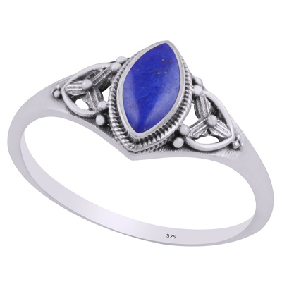 Gorgeous Handcrafted Work Around Lapis Marquise Shape 925 Sterling Solid Silver Ring