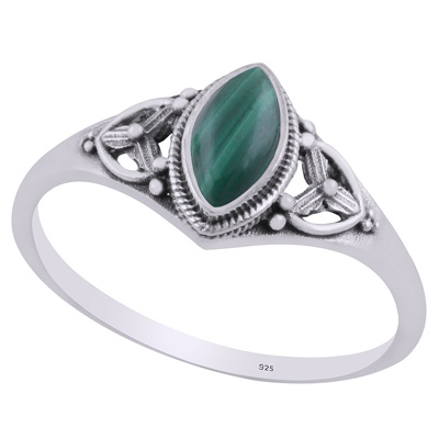 Gorgeous Handcrafted Work Around Malachite Marquise Shape 925 Sterling Solid Silver Ring