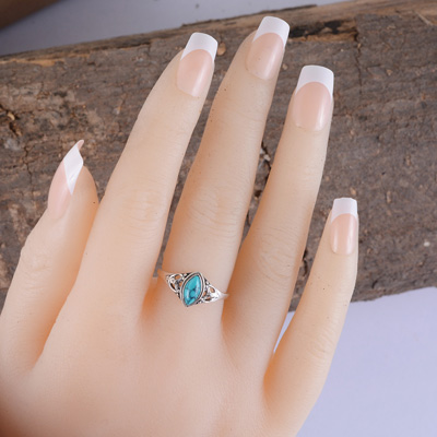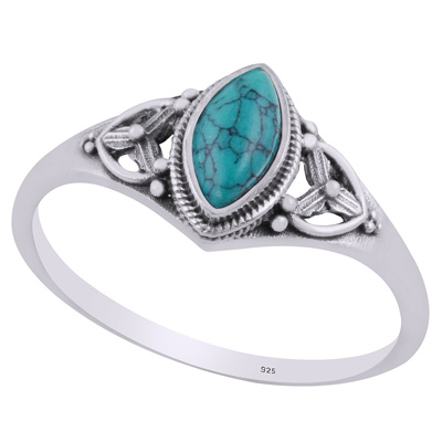 Gorgeous Handcrafted Work Around Turquoise Marquise Shape 925 Sterling Solid Silver Ring