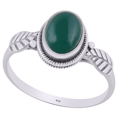 Alluring Textured Leaf Around Green Onyx Oval Shape 925 Sterling Solid Silver Ring