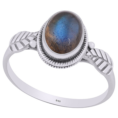 Alluring Textured Leaf Around Rainbow Moonstone Oval Shape 925 Sterling Solid Silver Ring