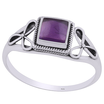 Gorgeous Flower Handcrafted Around Amethyst Square Shape 925 Sterling Solid Silver Ring