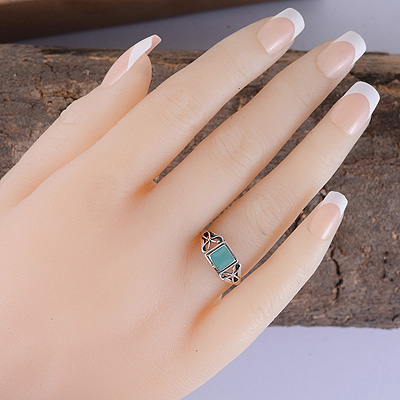 Gorgeous Flower Handcrafted Around Turquoise Square Shape 925 Sterling Solid Silver Ring