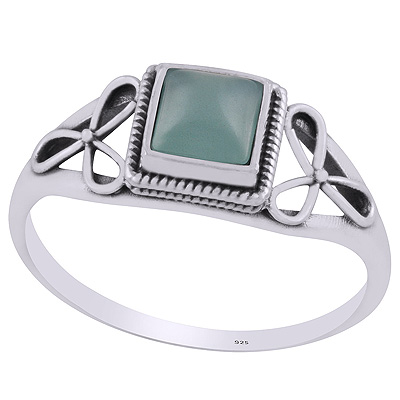 Gorgeous Flower Handcrafted Around Aqua Chalcedony Square Shape 925 Sterling Solid Silver Ring