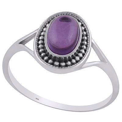 Home | Silver Rings | Cabochon Rings | Alluring Rawa Work Around Amethyst Oval Shape 925 Sterling Solid Silver Ring