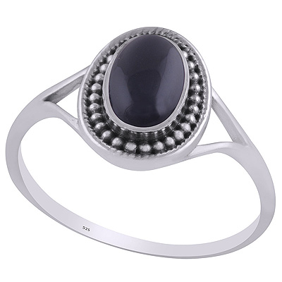 Home | Silver Rings | Cabochon Rings | Alluring Rawa Work Around Black Onyx Oval Shape 925 Sterling Solid Silver Ring
