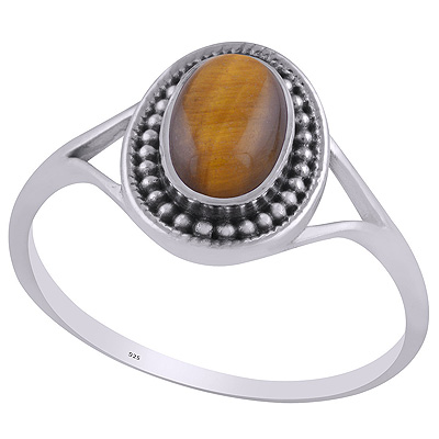 Home | Silver Rings | Cabochon Rings | Alluring Rawa Work Around Tiger's Eye Oval Shape 925 Sterling Solid Silver Ring