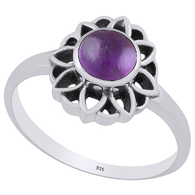 Gorgeous Oxidised Flower Work Amethyst Round Shape 925 Sterling Solid Silver Ring