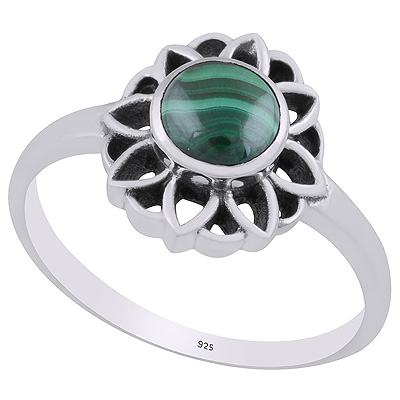 Gorgeous Oxidised Flower Work Malachite Round Shape 925 Sterling Solid Silver Ring