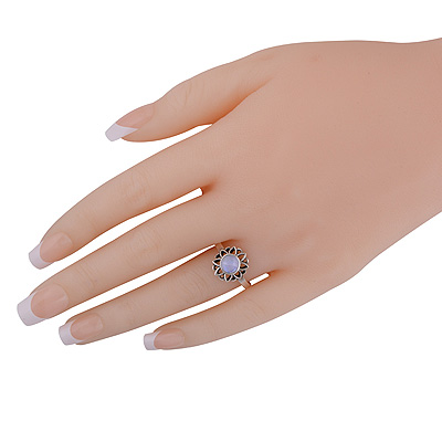Gorgeous Oxidised Flower Work Amethyst Round Shape 925 Sterling Solid Silver Ring