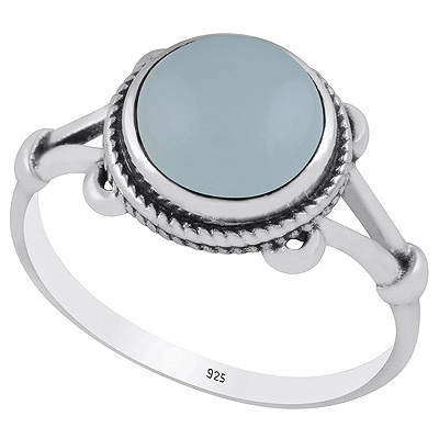 Stunning Twisted Work Around Blue Chalcedony Round Shape 925 Sterling Solid Silver Ring