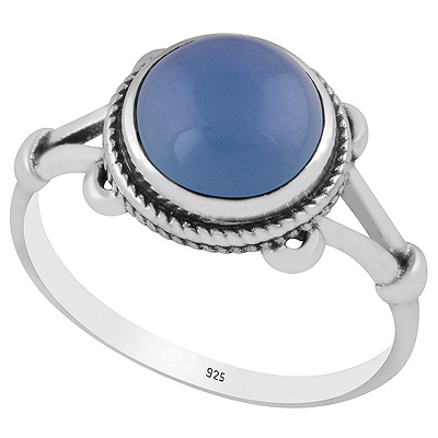 Stunning Twisted Work Around Blue Chalcedony Round Shape 925 Sterling Solid Silver Ring