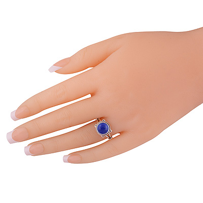 Stunning Twisted Work Around Lapis Round Shape 925 Sterling Solid Silver Ring