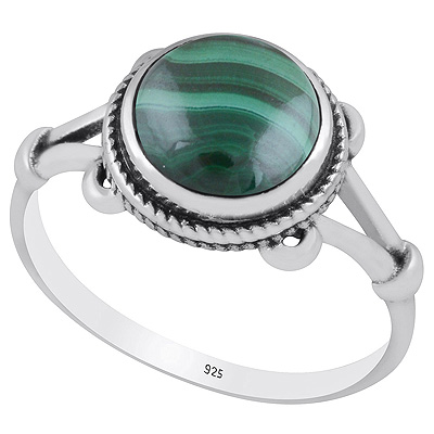 Stunning Twisted Work Around Malachite Round Shape 925 Sterling Solid Silver Ring