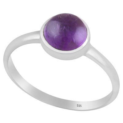 Magnificent Plain Gemstone Amethyst Round Shape 925 Sterling Solid Silver Ring
