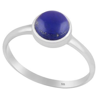 Magnificent Plain Gemstone Lapis Round Shape 925 Sterling Solid Silver Ring