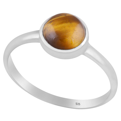 Magnificent Plain Gemstone Tiger's Eye Round Shape 925 Sterling Solid Silver Ring