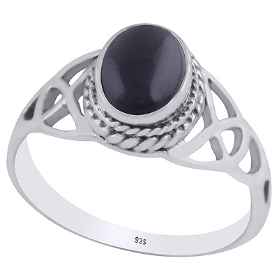 Alluring Handcrafted Pattern Around Black Onyx Oval Shape 925 Sterling Solid Silver Ring
