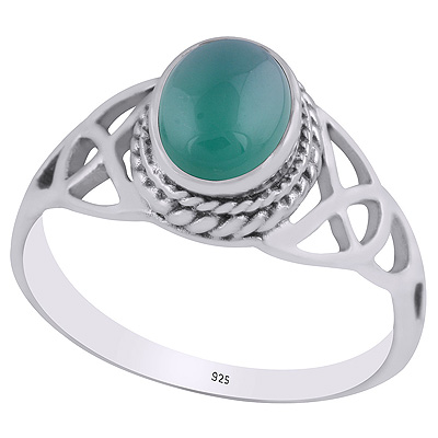 Alluring Handcrafted Pattern Around Green Onyx Oval Shape 925 Sterling Solid Silver Ring