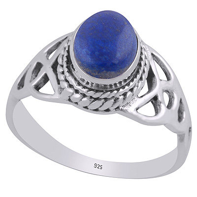 Alluring Handcrafted Pattern Around Lapis Oval Shape 925 Sterling Solid Silver Ring