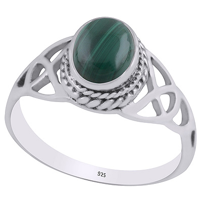 Alluring Handcrafted Pattern Around Malachite Oval Shape 925 Sterling Solid Silver Ring