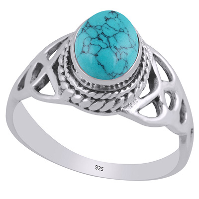 Alluring Handcrafted Pattern Around Turquoise Oval Shape 925 Sterling Solid Silver Ring