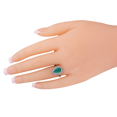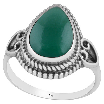 Beautiful Rawa Work Around Green Onyx Pear Shape 925 Sterling Solid Silver Ring