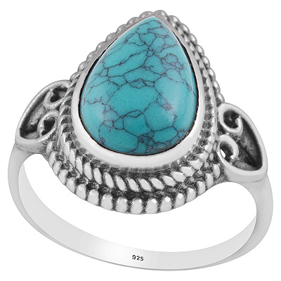Beautiful Rawa Work Around Turquoise Pear Shape 925 Sterling Solid Silver Ring