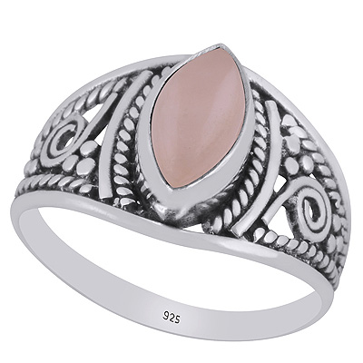 Beautiful Handcrafted Work Around Rose Quartz Marquise Shape 925 Sterling Solid Silver Ring