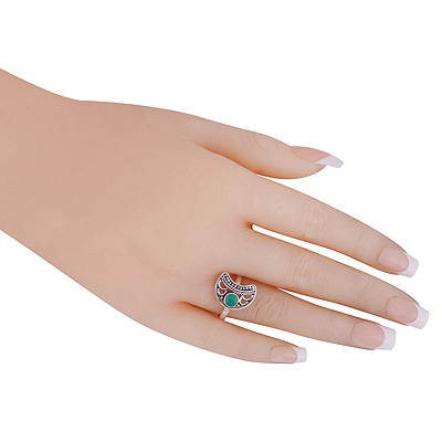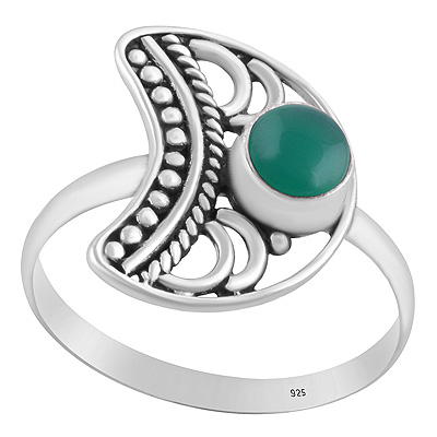 Alluring Crescent Moon Rawa Work Around Rainbow Moonstone Round Shape 925 Sterling Solid Silver Ring