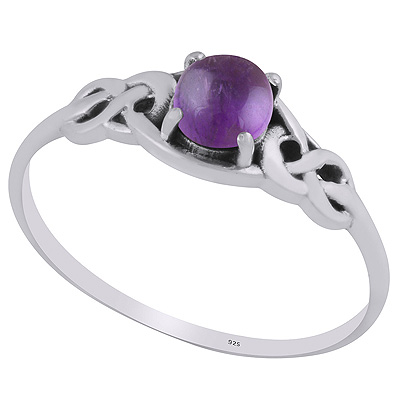 Home | Silver Rings | Cabochon Rings | Alluring Celtic Knot Around Amethyst Round Shape 925 Sterling Solid Silver Ring