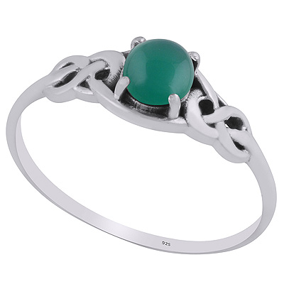 Home | Silver Rings | Cabochon Rings | Alluring Celtic Knot Around Green Onyx Round Shape 925 Sterling Solid Silver Ring