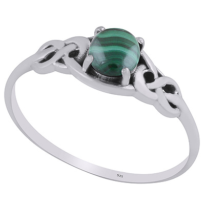 Home | Silver Rings | Cabochon Rings | Alluring Celtic Knot Around Malachite Round Shape 925 Sterling Solid Silver Ring